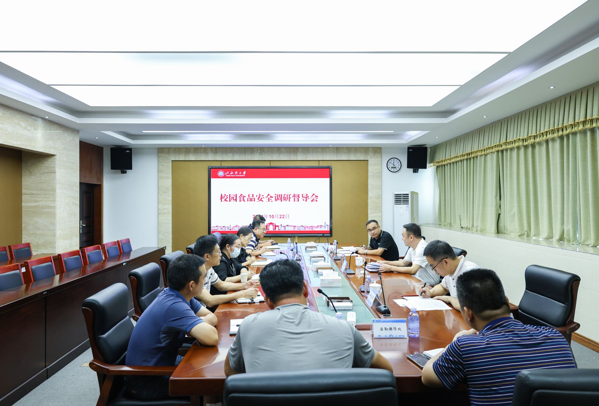 10月22日上午,校园食品安全调研督导会在办公楼327会议室召开。校党委副书记、校长苗剑,自治区纪委监委驻北部湾大学纪检监察组组长、校党委常委、纪委书记谢立平出席会议并讲话,校党委常委、副校长马秀明主持。