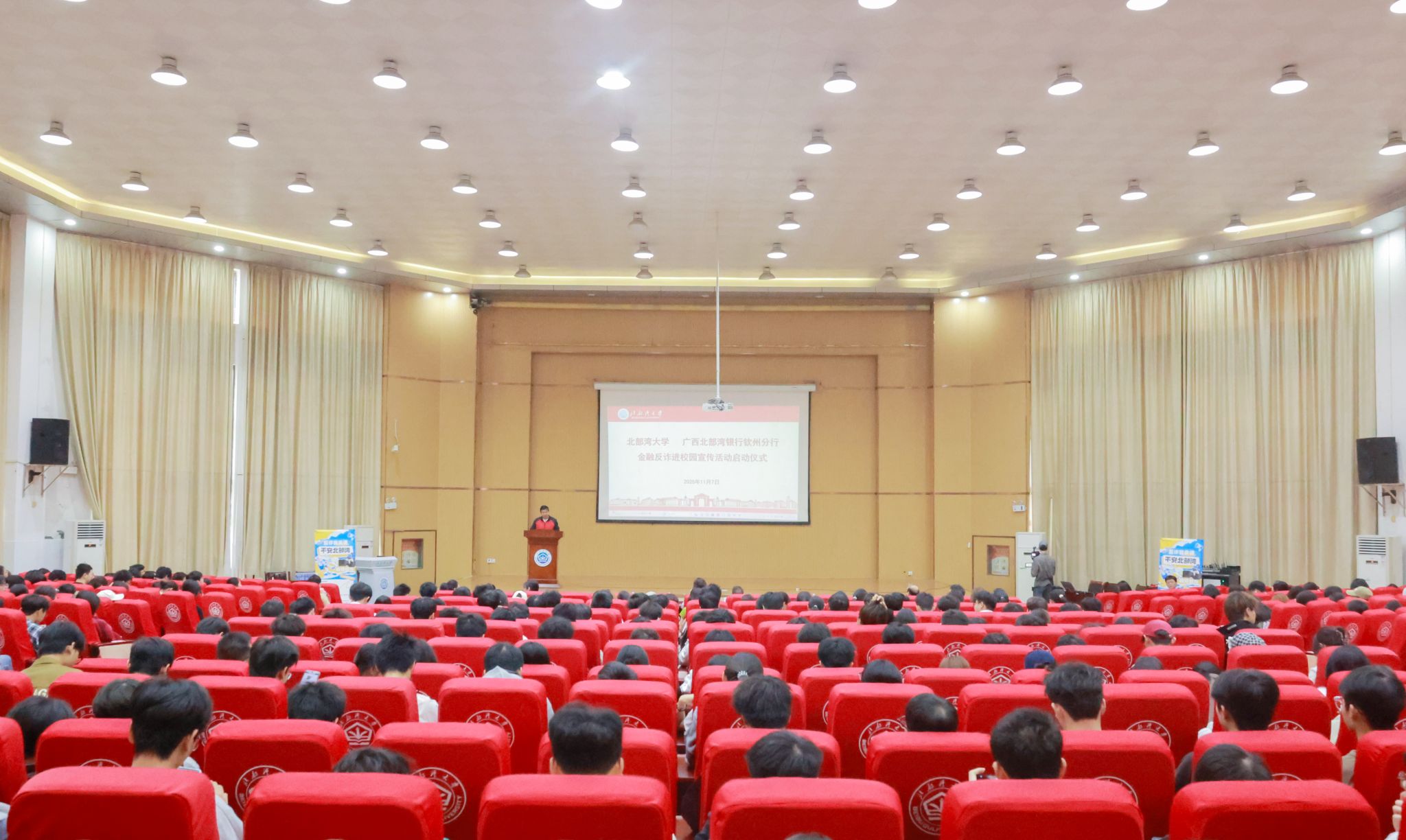11月7日,学校与联合广西北部湾银行钦州分行,在4号教学楼101报告厅成功举办金融安全反诈知识讲座暨“金融反诈进校园”宣传活动启动仪式。学校保卫处、学生工作处相关负责人、各二级学院分管学生工作的党委副书记、学生安全管理员及学生代表约400人参加。