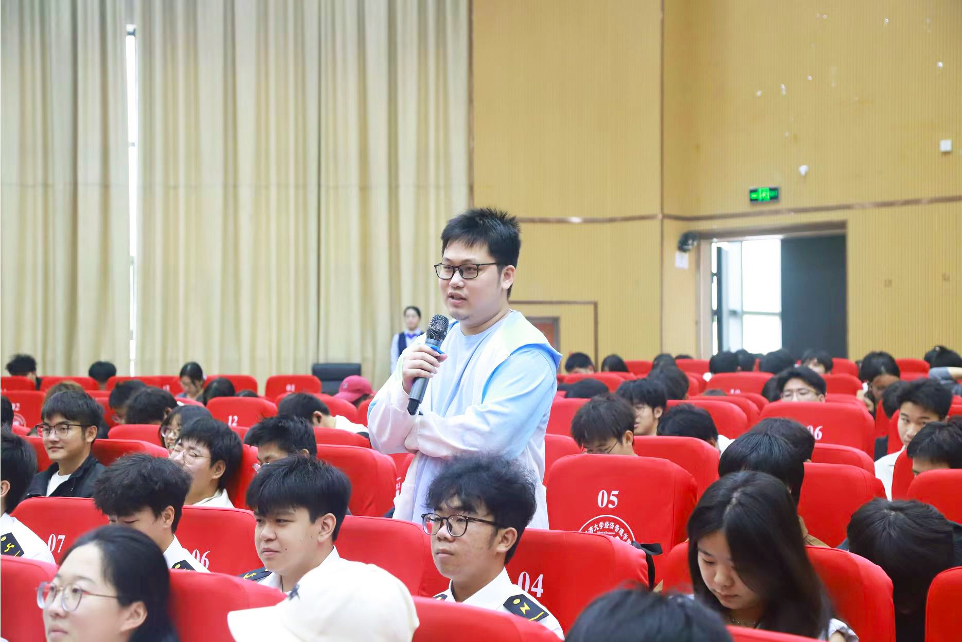 在互动环节,广西北部湾银行钦州分行讲师陈俊良与同学们展开问答交流,现场气氛热烈,学生踊跃参与,将活动推向高潮。