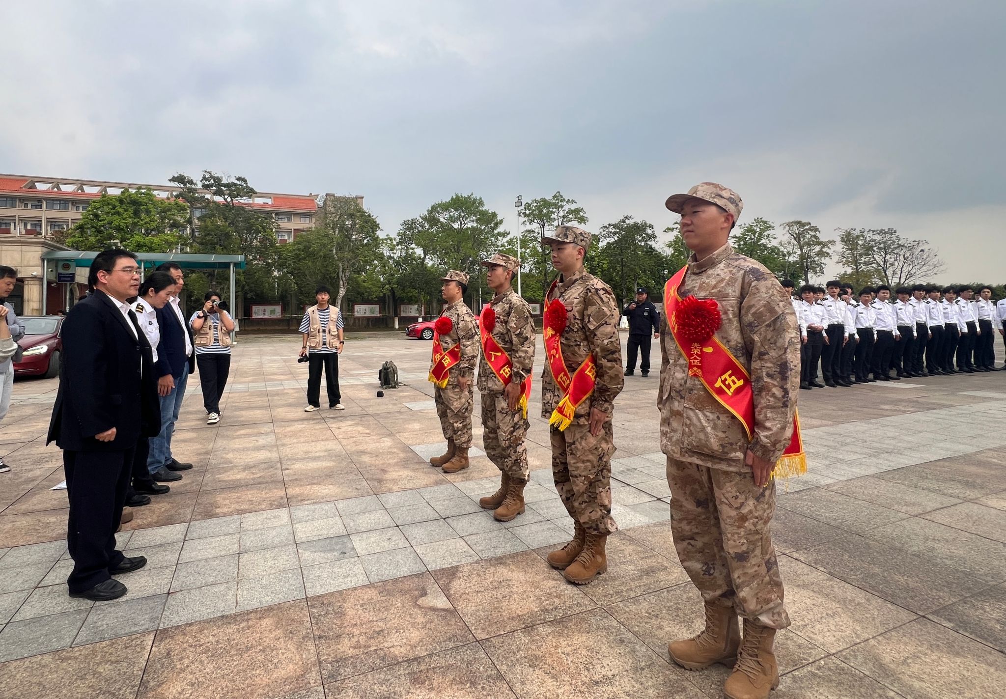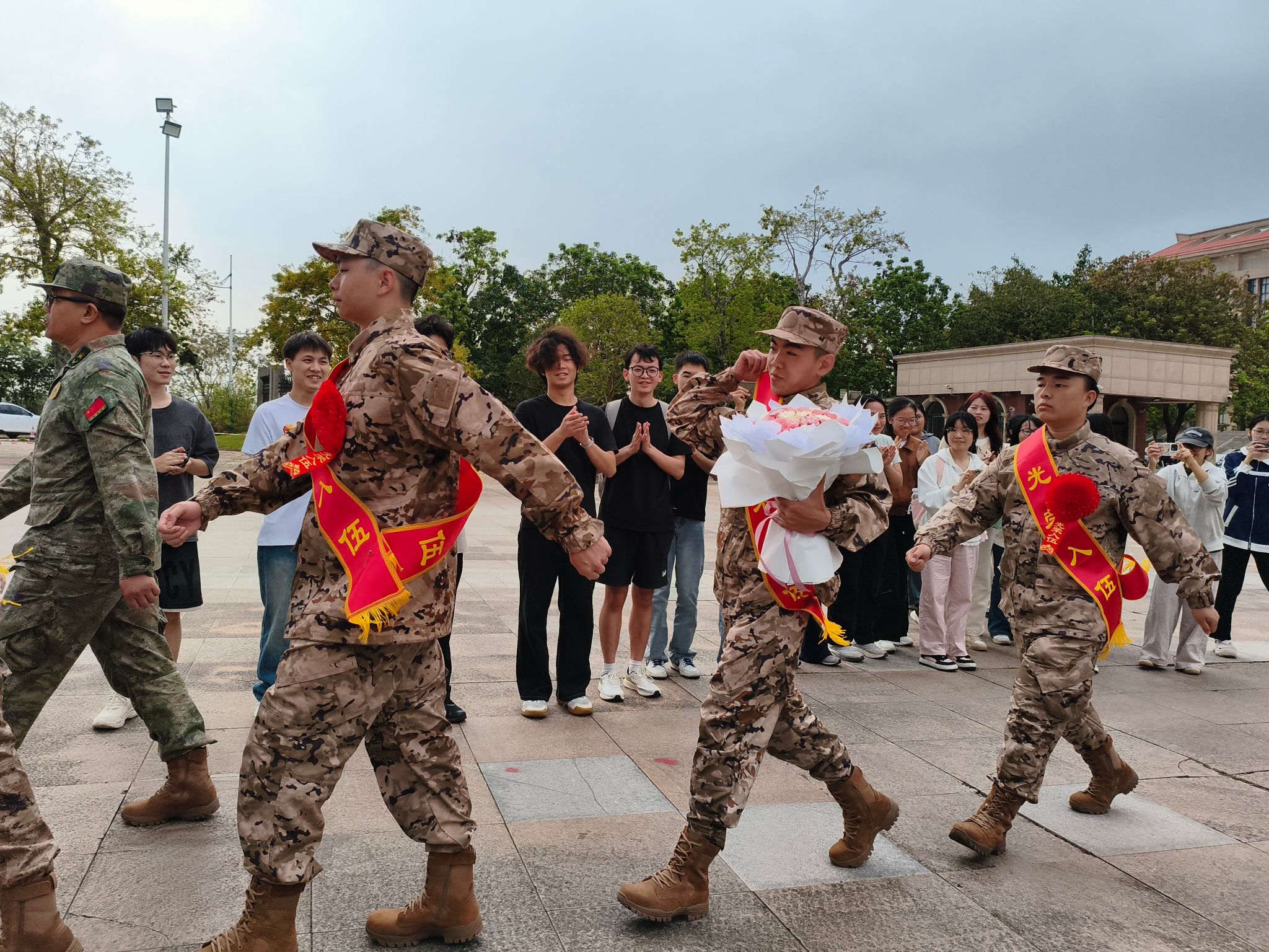 仪式现场氛围庄重而热烈,4名入伍学子身着迷彩军装,身姿挺拔、精神昂扬,眼中饱含着对军旅生涯的向往与对家国责任的坚定。他们主动响应国家号召,毅然放下书本、携笔从戎,将青春梦想融入强军伟业,用实际行动诠释了新时代青年学子的责任与担当,展现了我校学子胸怀家国、勇担使命的良好风貌。